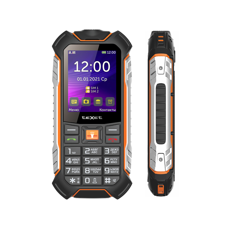 Сотовый телефон teXet TM-530R оптимален для использования в экстремальных ситуациях. Ударопрочный пластиковый корпус устойчив к повышенной нагрузке. Модель сохраняет первоначальный вид при случайных ударах, воздействии влаги и пыли, так как имеет класс защиты IP68. На боковых сторонах корпуса предусмотрены прорезиненные вставки и заглушки, которые предотвращают повреждение внутренних элементов.